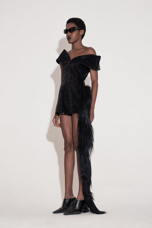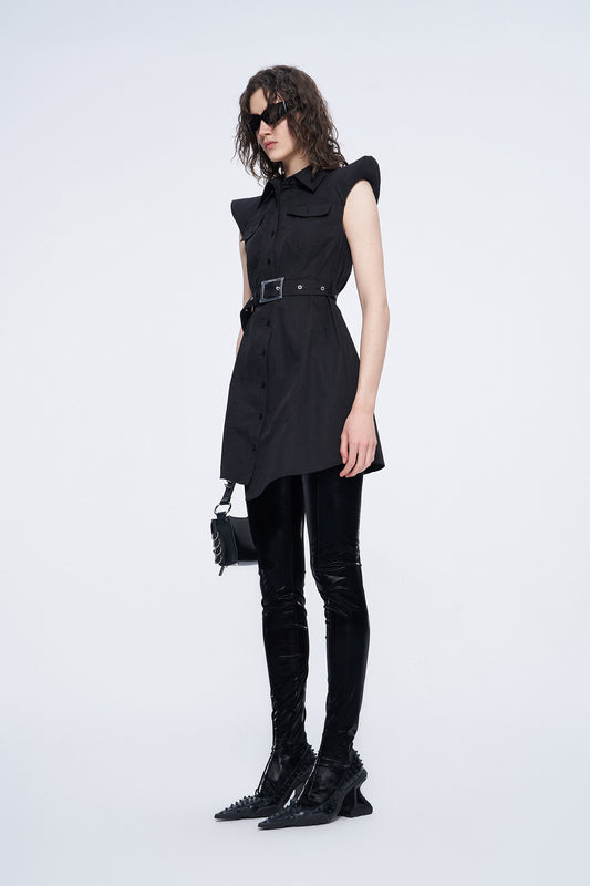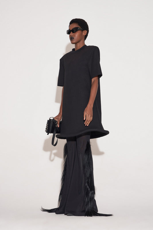 UFO-Hem Dress with Shoulder Pads