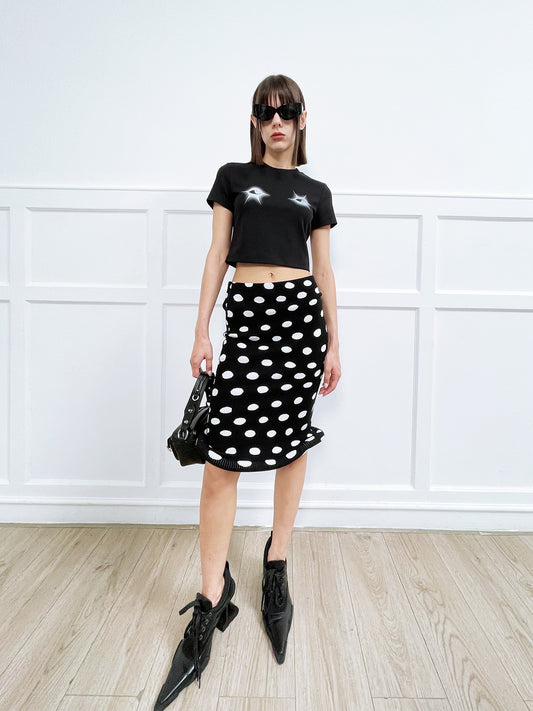 Twisted polka dot knitted half skirt