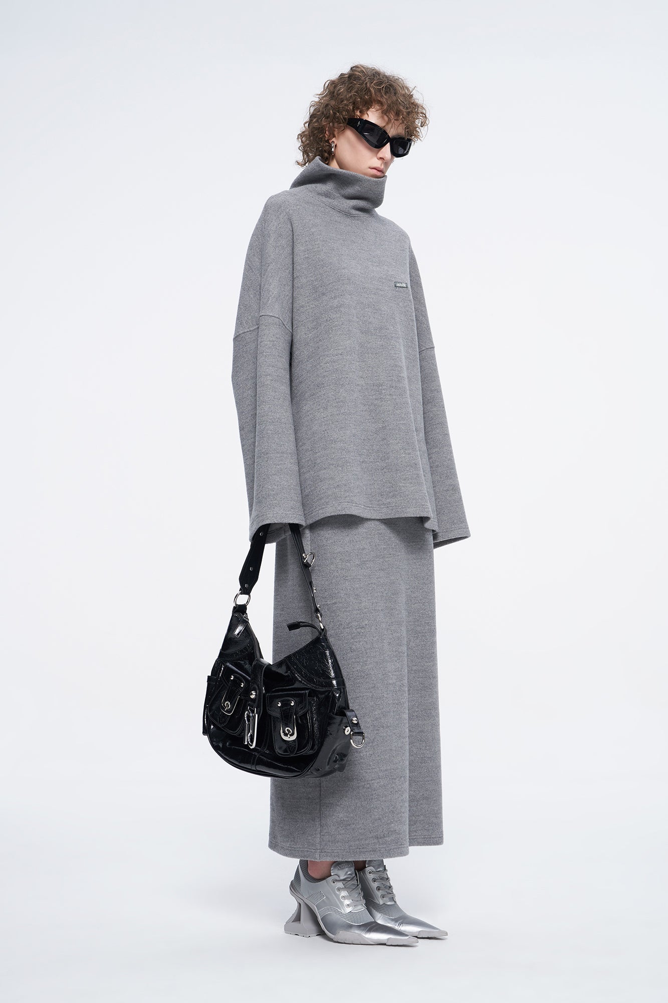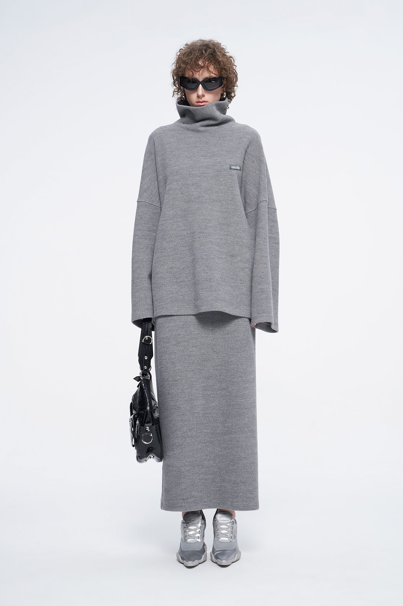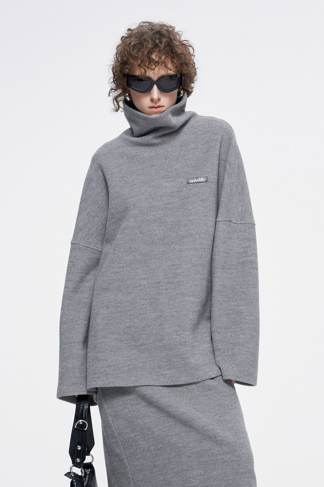 high-necked sweater with a loose silhouette