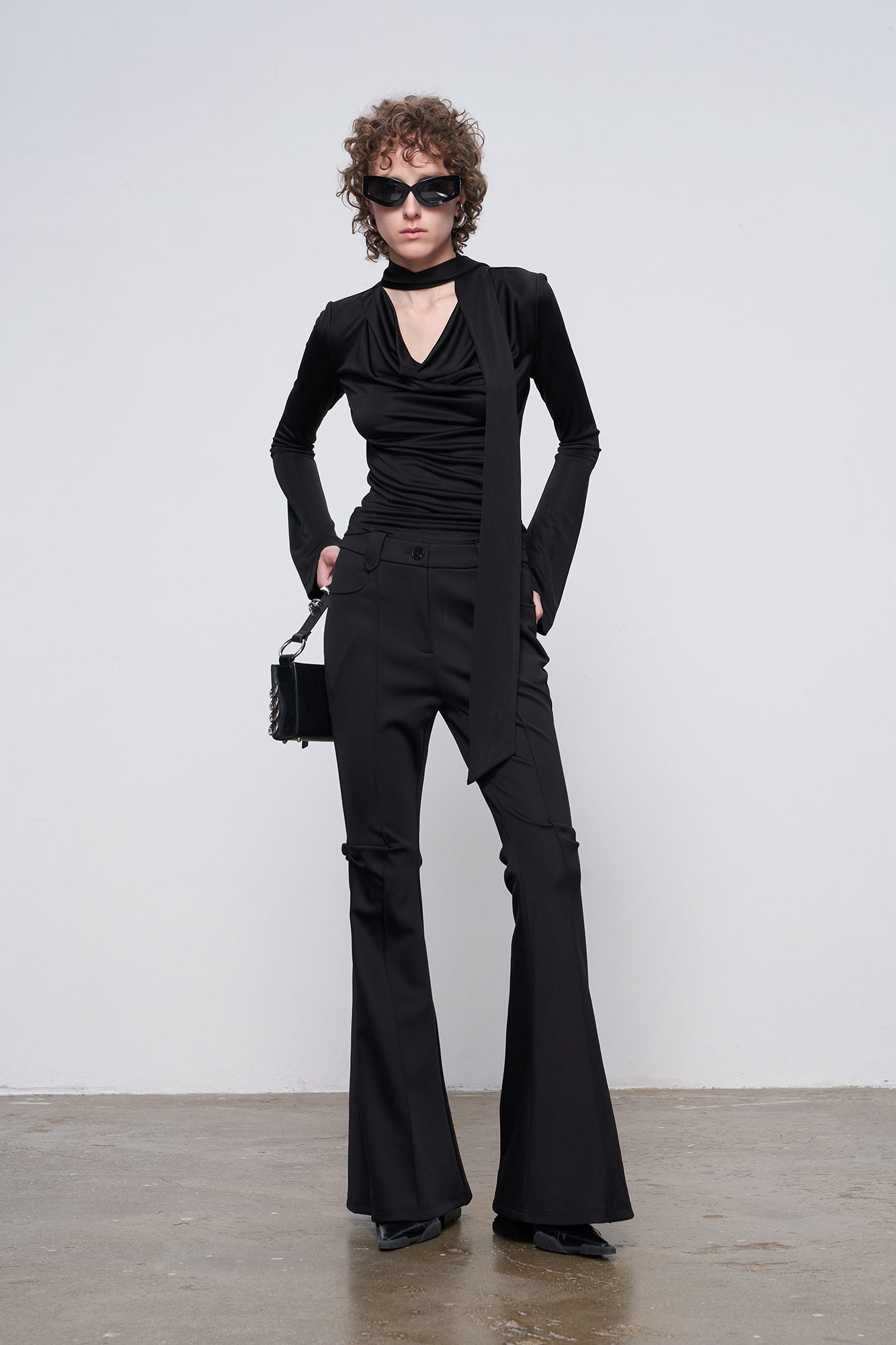 ·Classic stovepipe flared trousers shape, showing golden proportion figure.
