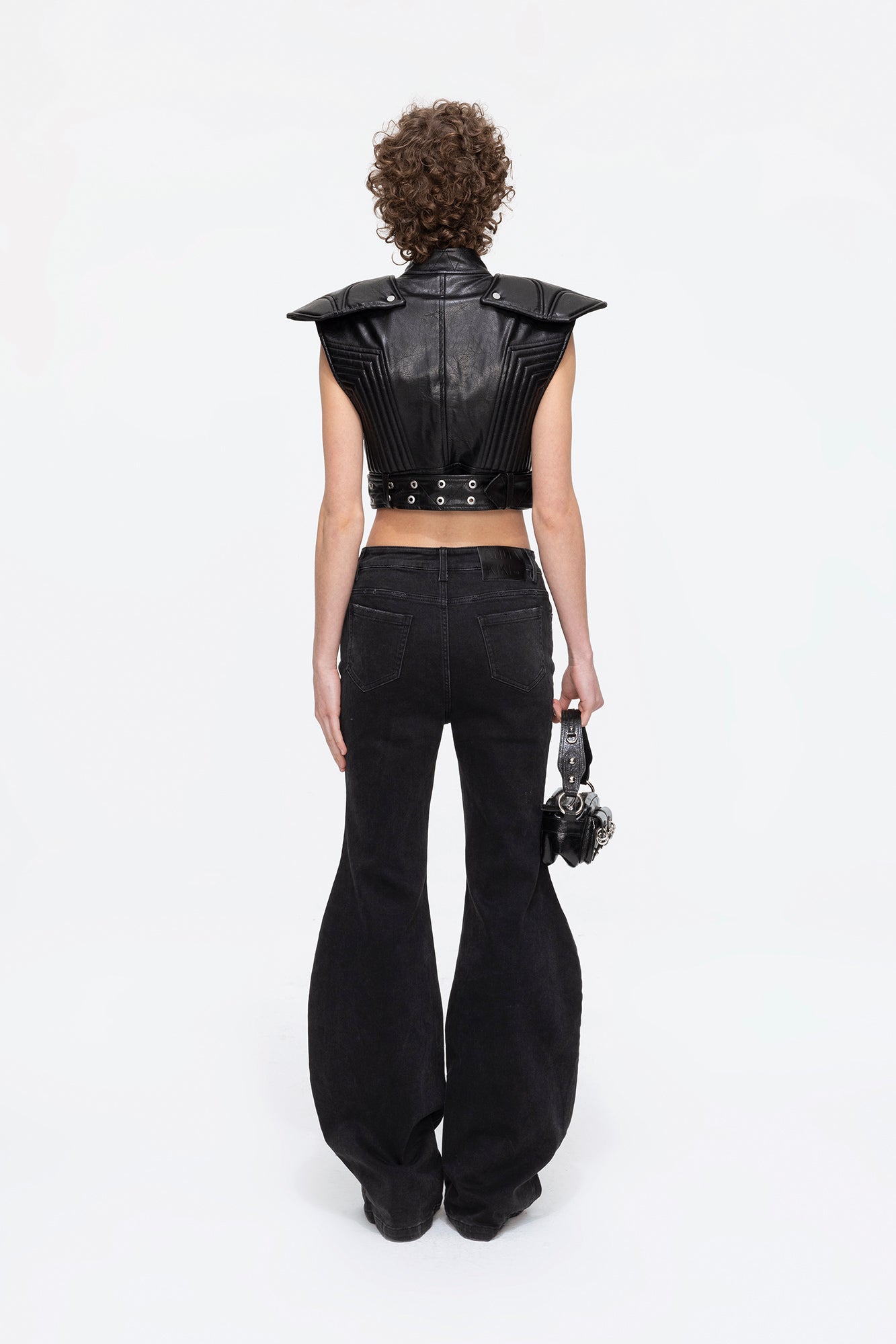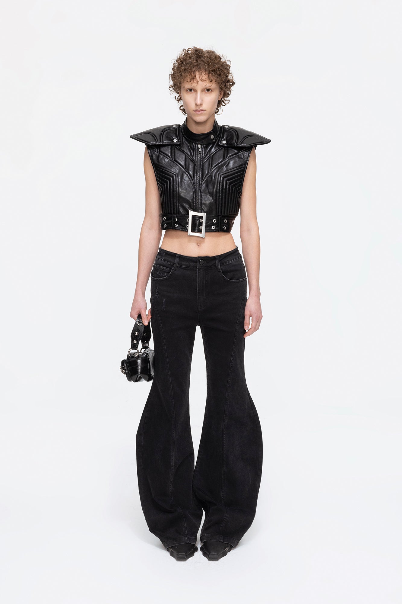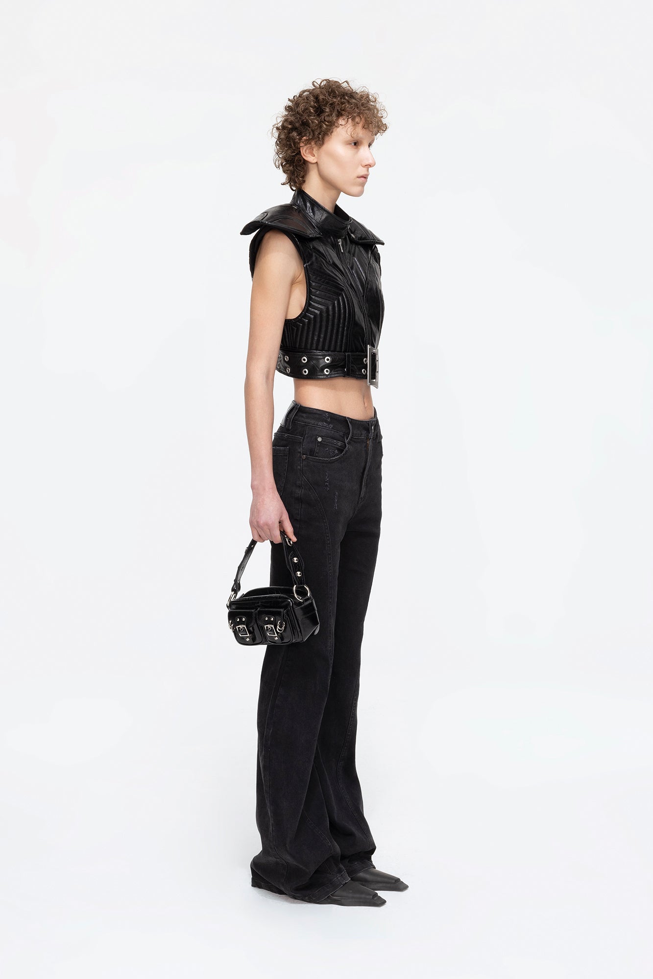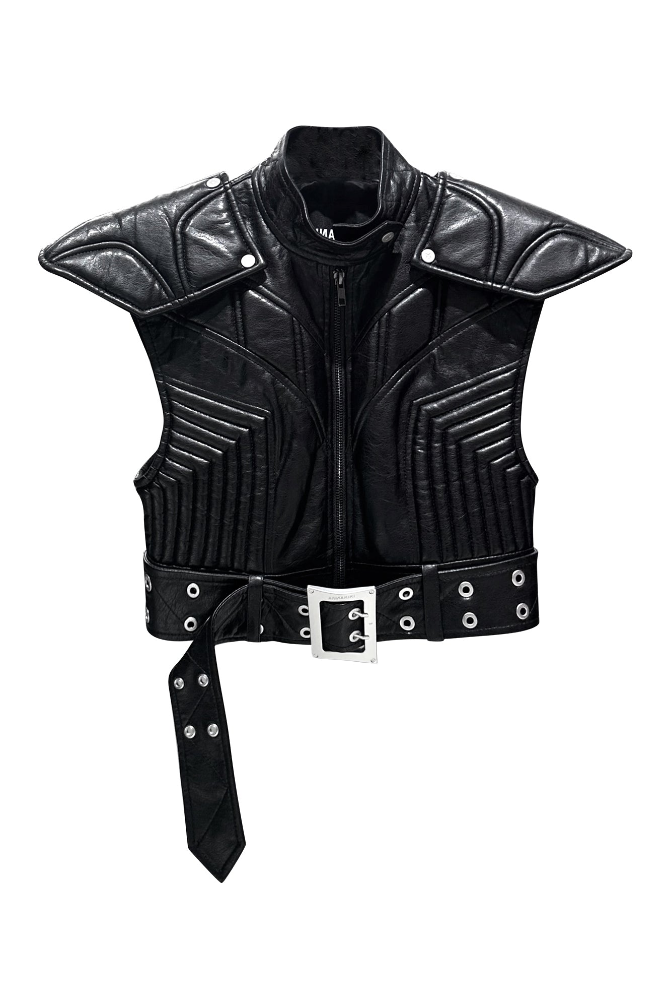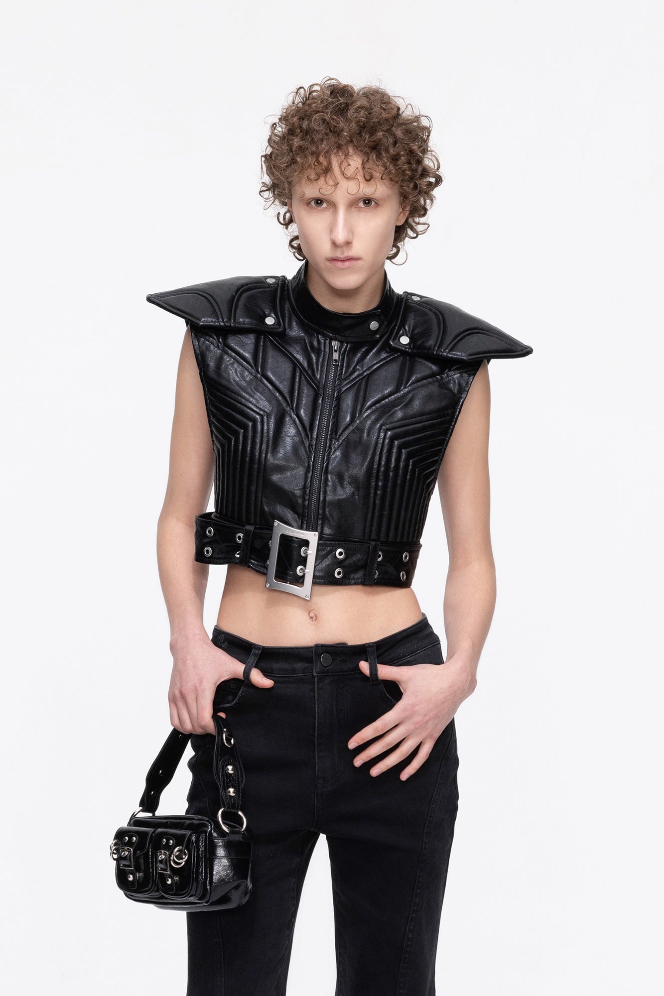 ·The 3D three-dimensional structure of the brand's retro futuristic deconstruction style, combined with three-dimensional detachable shoulder armor, gives the overall body a sense of design and futurism. The uneven thickness of the retro leather fabric features a futuristic design that collides with the retro feel of the fabric, further demonstrating the strong style of the brand's retro futuristic theme