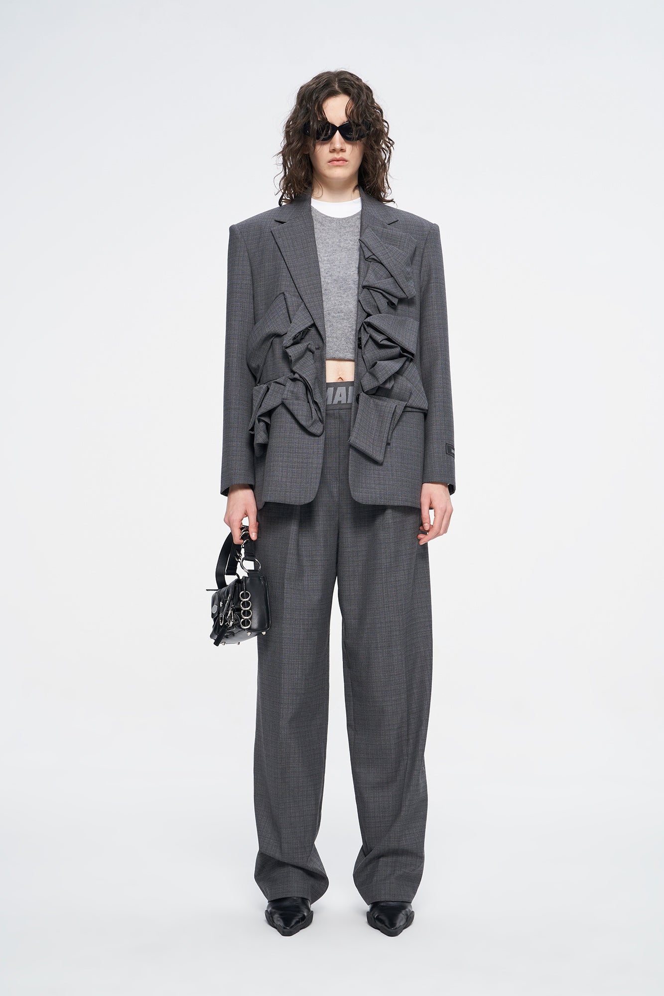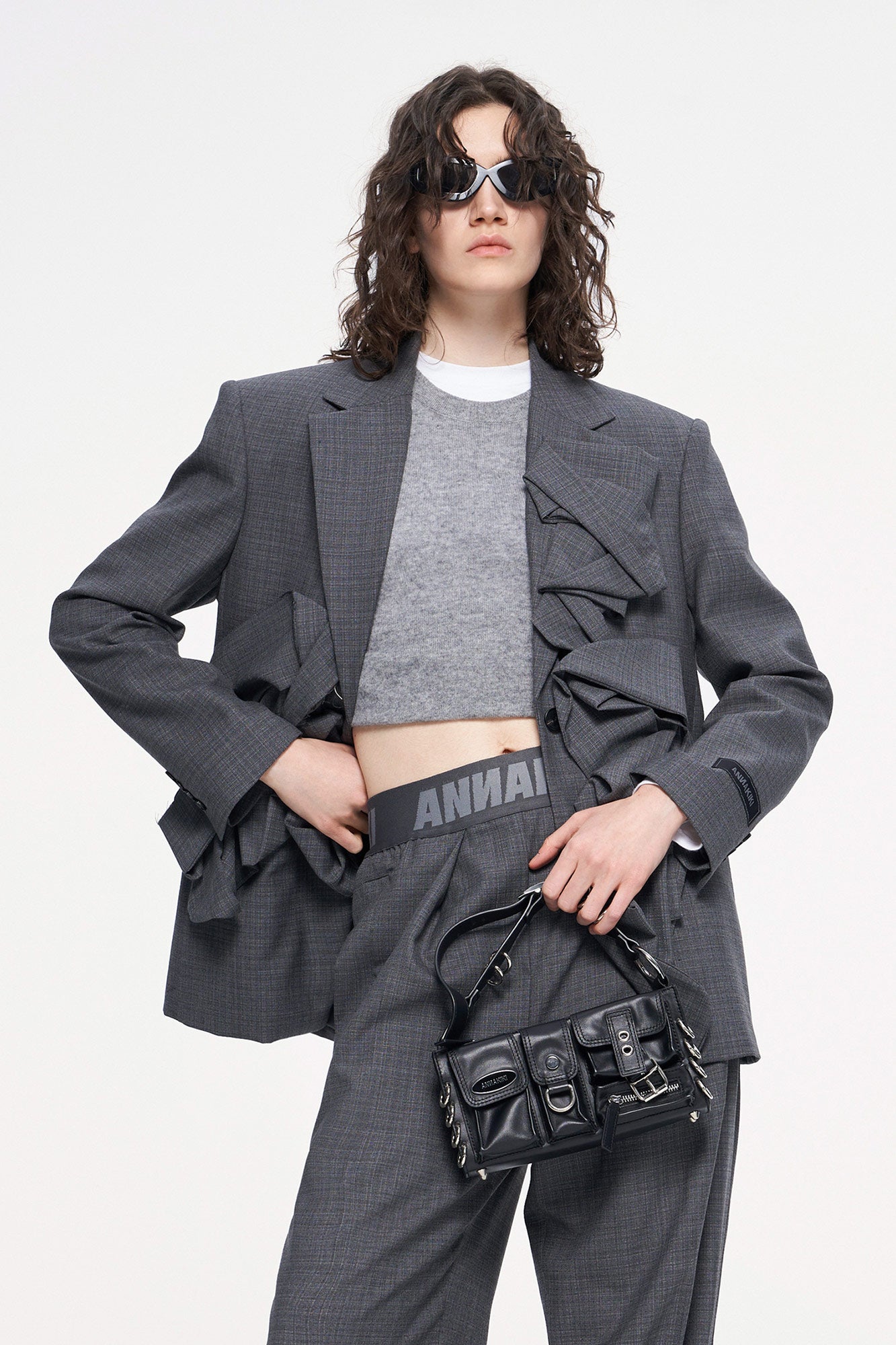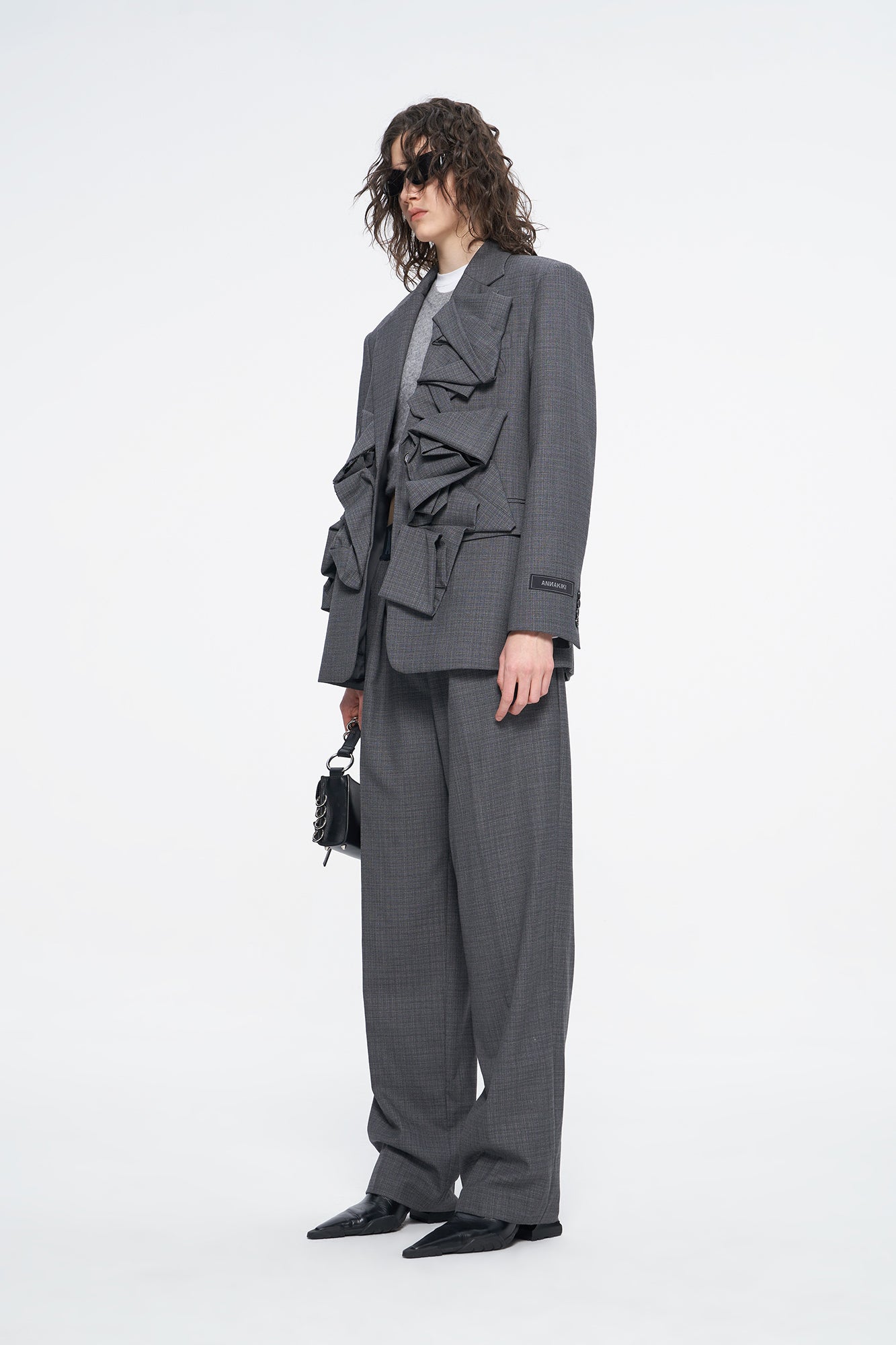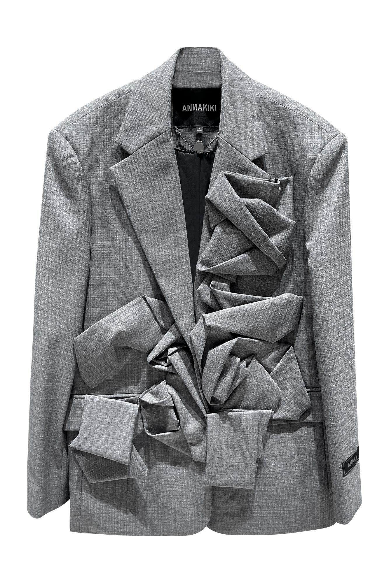 The loose-fitting suit is comfortable and versatile, and the unique three-dimensional deconstruction of the front piece adds a sense of design