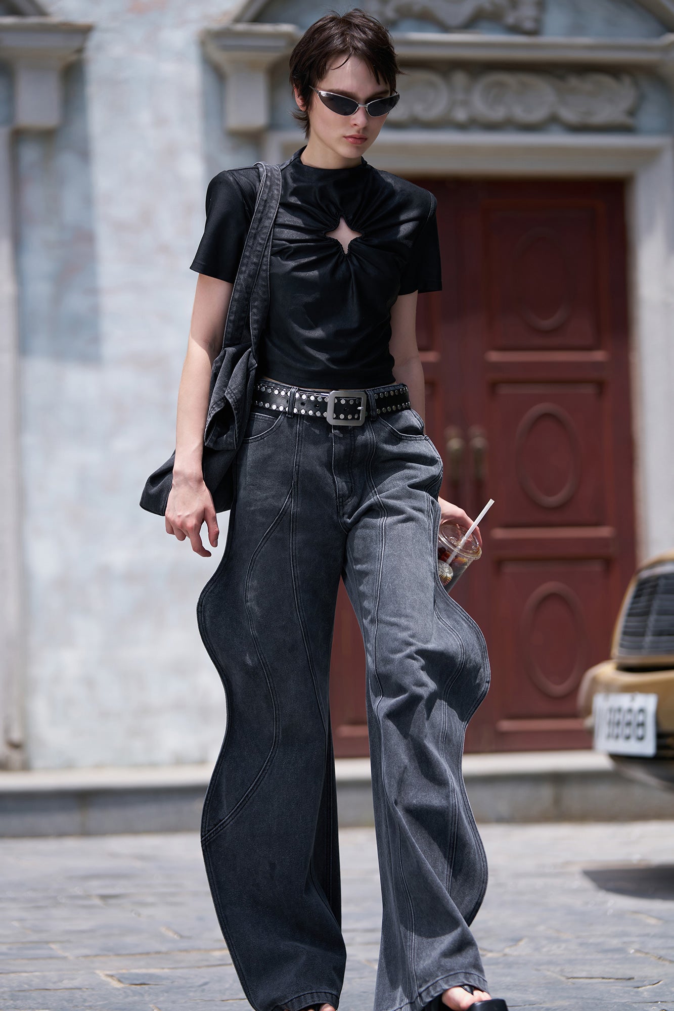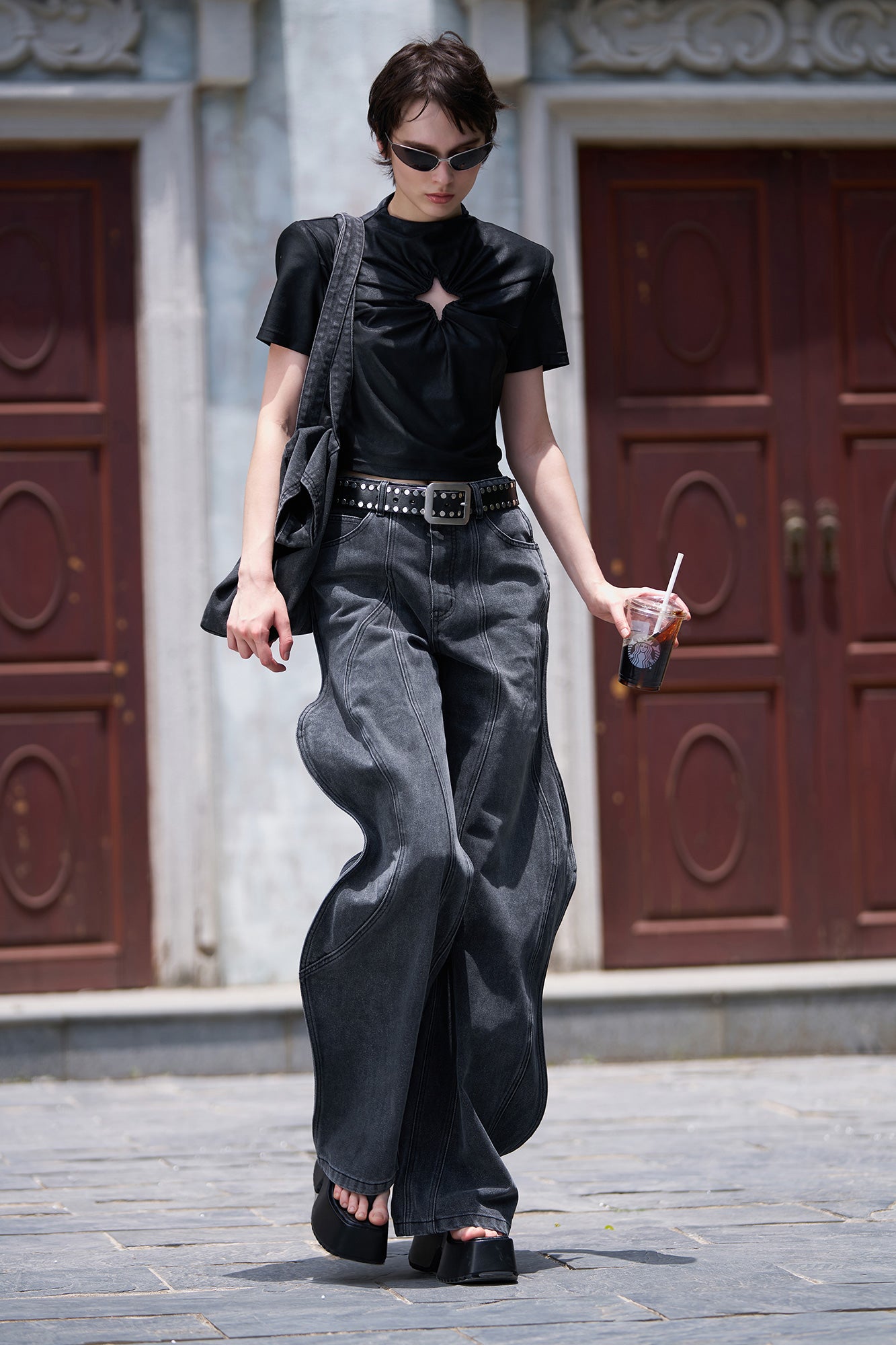 3d wave pants silhouette, high-profile and not exaggerated, adds visual sense and is the focus of the crowd.